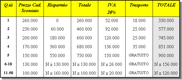 COSTI CHIAVI IN MANO PER LE OFFERTE DEL MESE